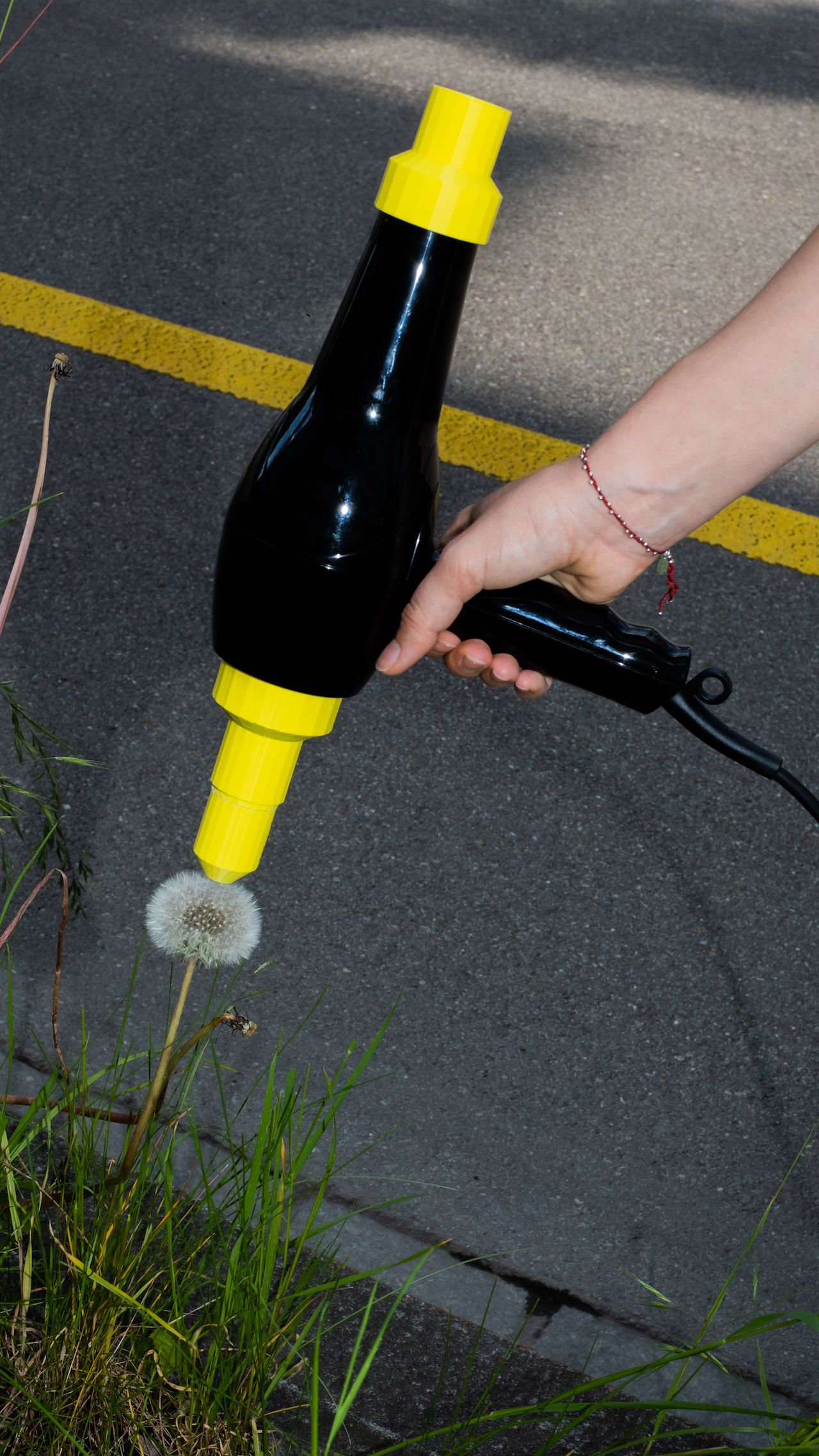 We are taught from a very young age which plants are beautiful, edible and useful and which are bad, destructive and should be weeded out. Most plants we produce only exist in monocultures, we ship them around the world, if they are to be sold in supermarkets they have to be immaculate, look exactly how people expect. The systems with which we feed ourselves has become broken and we now have to face the consequences with climate change, disappearing biodiversity, world hunger and overproduction at the forefront of problems. We think there is enormous potential present in our own backyards to start a change in how we relate to nature and food, in the form of weeds. But instead of utilising it, we fight it. We ignore it, pluck it out and poison it, so it doesn't destroy the images of well-kept backyards and streets. Weeds or ”Unkraut'' in German is disregarded despite the reality that some of these plants are in fact very versatile and efficient in use. They are very resilient, have an enormous reproduction rate, grow almost anywhere and we can process and use an extremely large percentage of the whole plant. Nettles, Ribwort or Dandelion are good examples of such plants that exist in our backyards. Our product should act as a communication tool. We use a non destructive way to collect seeds and are assisting in spreading them where the wind couldn’t. We shift the focus to a plant which is often overlooked and spend the time to acknowledge its value. We want to indicate the potential the “Gutkraut” around us can have, not only for what it can do for us in an immediate fashion, but the systematic change it could bring to our thinking and communities.